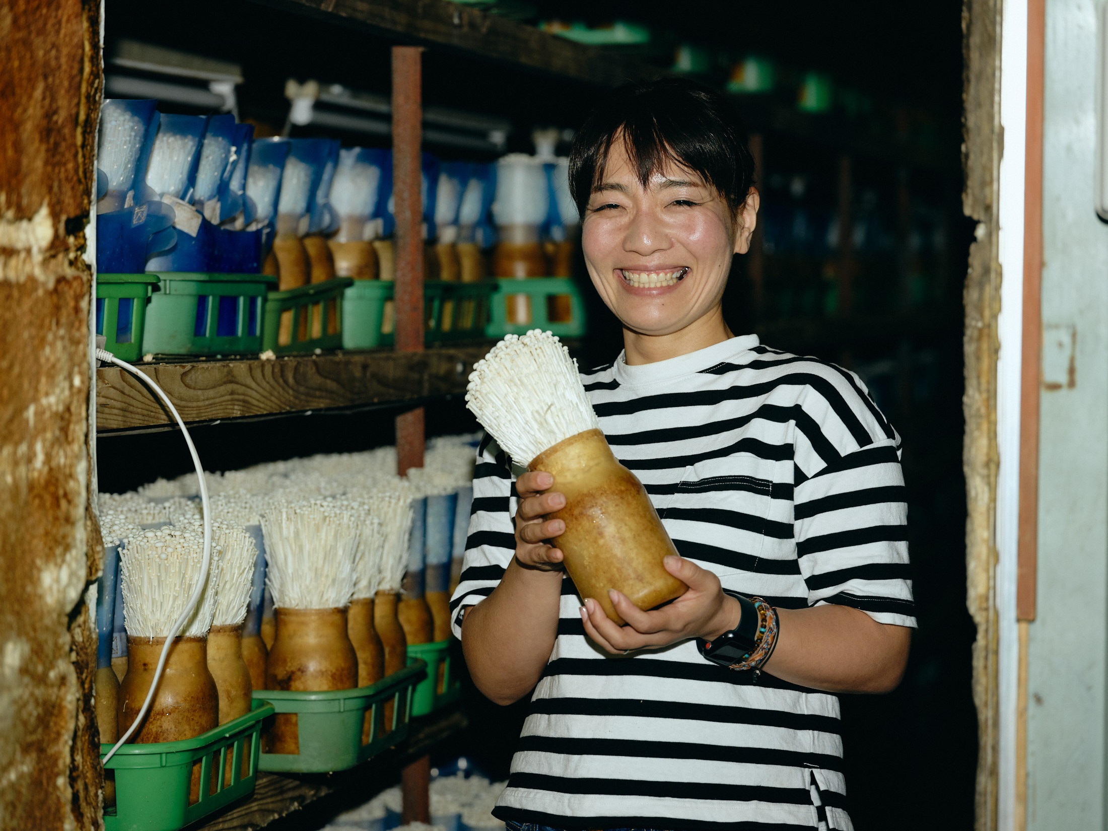 博子 キノコ作りの仕事は、朝は早いし、当時はいま以上に工場が古くて機械が少なかったから、人が手を動かさないといけない。でも、「そりゃ美味しいよね。こんだけ手をかけてんだから!」。