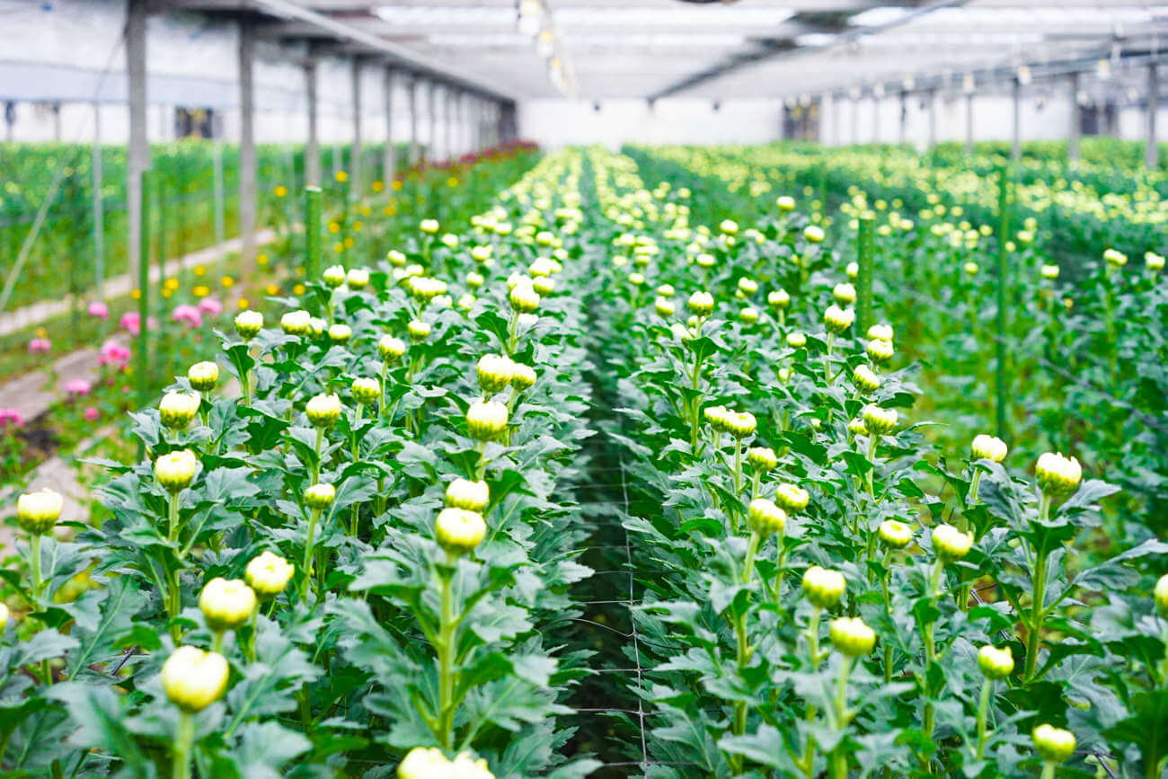 ラナンキュラスが流行り始めた頃にラナンキュラスの栽培もやってみたりしたんですけど、4年前にこのハウスを買ってからは、再び菊一本でやっています。