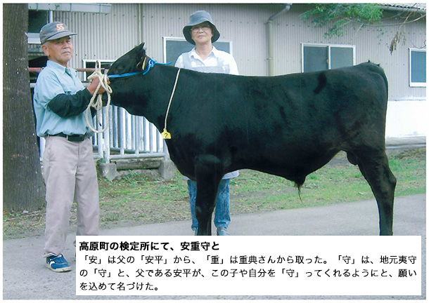安重守は順調に育ち、種雄牛として見込まれた。生後7ヶ月半で高原町の検定所へ。さらに選抜され、宮崎県家畜改良事業団へと移り、宮崎牛の主力種雄牛となった。