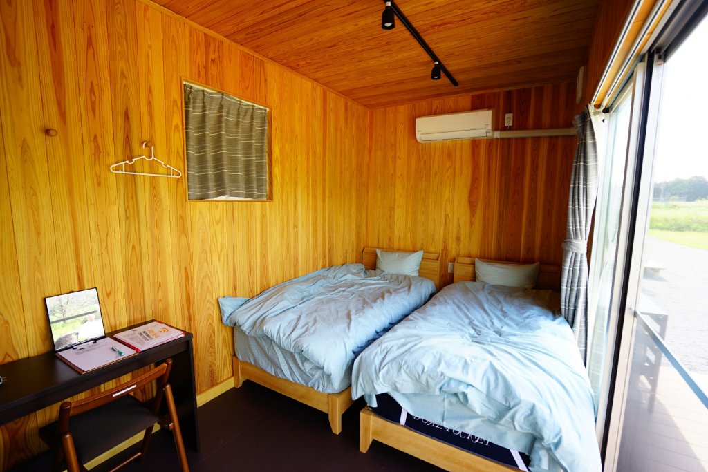 宿泊できる部屋のタイプはAタイプ、Bタイプ、Cタイプの3つ。Aタイプは2台のシングルベッドにユニットバスがついていてファミリー向け、BタイプとCタイプは友人同士や単身向けです。