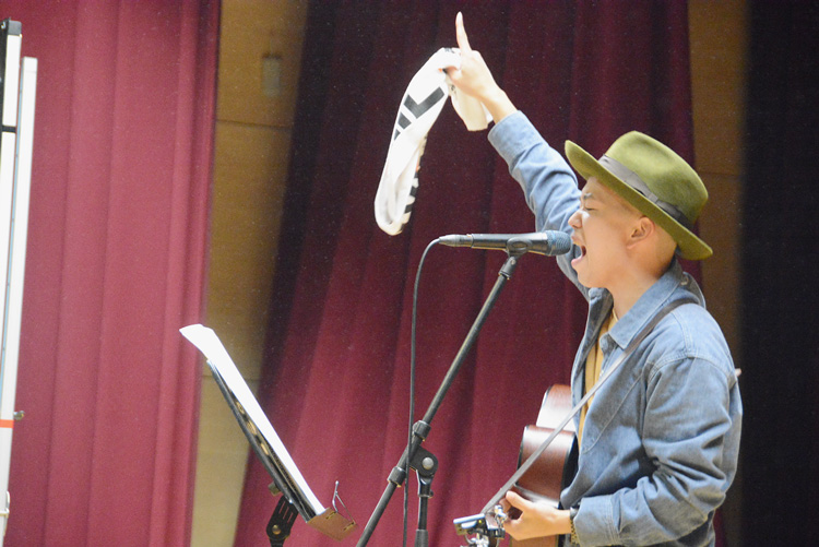 途中までスラスラ書けていた歌詞も、なかなか進まなくなってきた頃、NOBUさんに即興で曲をつけてもらいました。